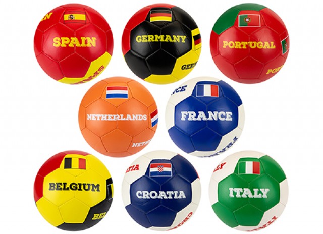 The 8 Assorted Size 5, 32 Panel Footballs showcase iconic designs from top European football teams: Portugal, Croatia, Germany, Spain, Italy, Holland, France, and Belgium. Crafted for high performance and durability, these footballs are ideal for matches, training sessions, or promotional purposes. Perfect for sports retailers and clubs.