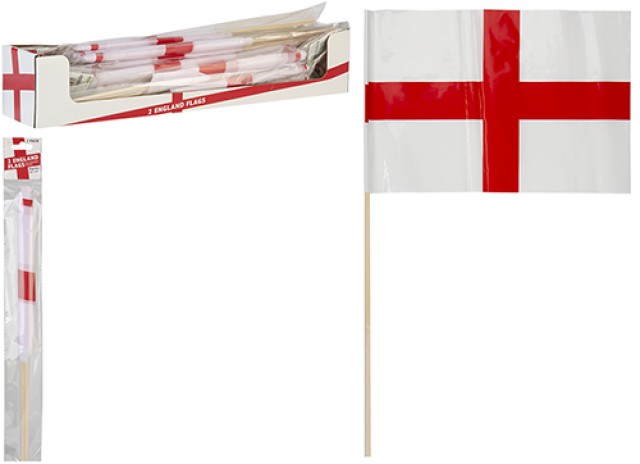 Cheer in patriotic style with this pack of 2 England Flags on sturdy wooden sticks. Ideal for sports events, celebrations, and national holidays. Lightweight, easy to wave, and perfect for giveaways or retail display. An essential accessory for any England supporter or party merchandise collection.