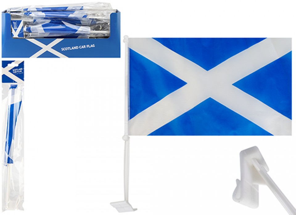 Show national pride with this Scotland Car Flag with Stick, perfect for sporting events, tournaments and celebrations. Featuring the iconic Scottish Saltire design, this durable car window flag easily attaches with the included stick for quick display. A popular supporters accessory ideal for retailers stocking Scotland football merchandise and patriotic flags.