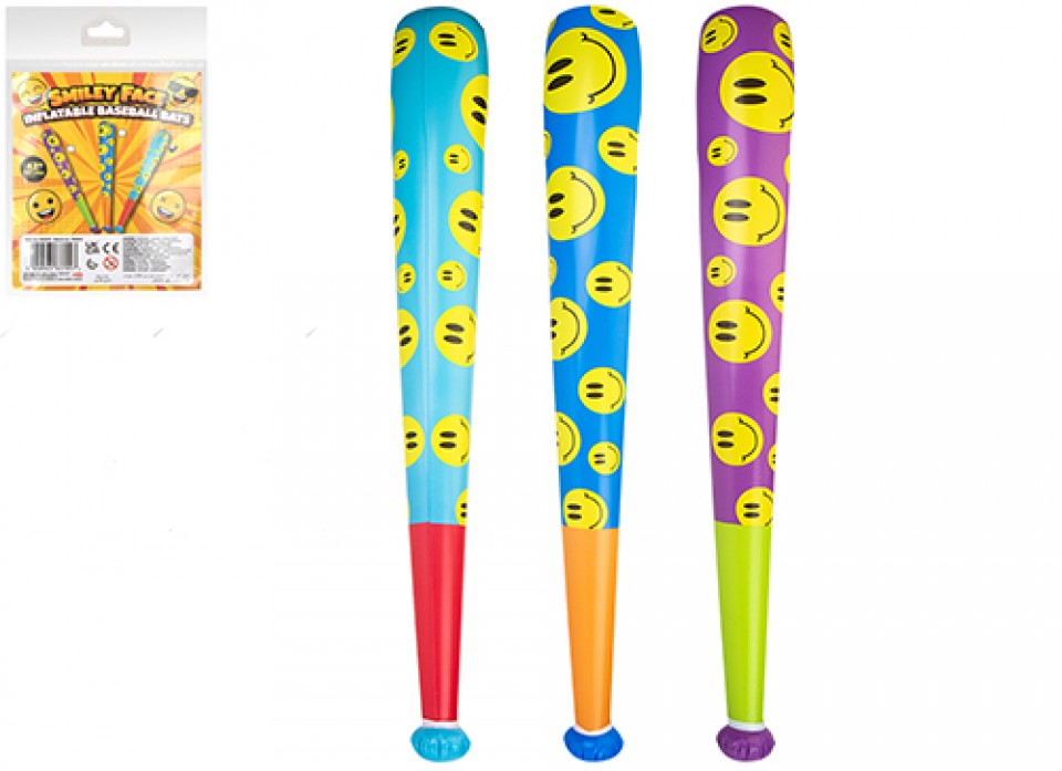 The 3 assorted 42" Smiley Face Inflatable Baseball Bats combine fun and safety, perfect for parties, promotions, and events. Lightweight and eye-catching with vibrant smiley designs, these inflatable bats offer wholesale buyers a popular novelty item that drives engagement and boosts sales.