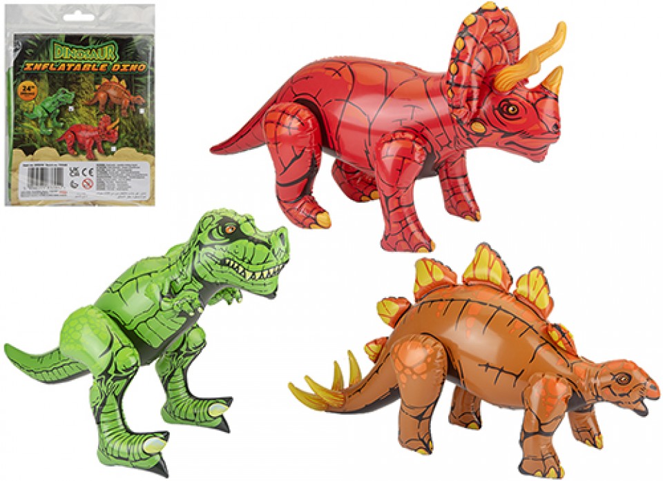 Boost your wholesale inventory with these 24" Inflatable Dinosaurs, available in 3 assorted designs. Perfect for events, retail, and party supplies, these durable, eye-catching inflatables attract dinosaur enthusiasts of all ages.