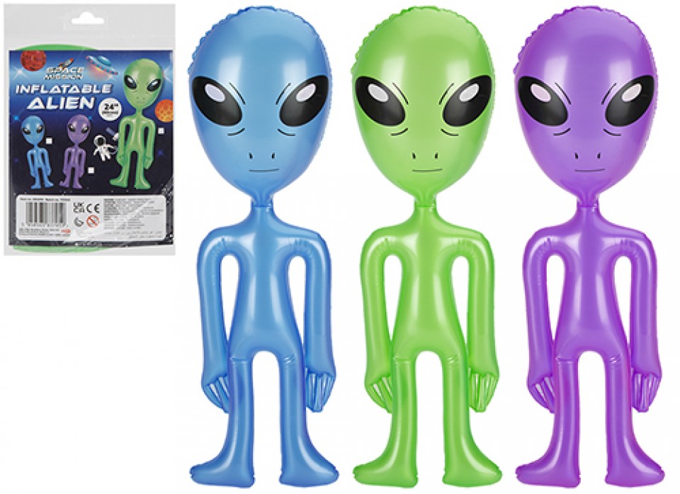 Blast off into fun with this 24" Inflatable Standing Outer Space Alien! A vibrant novelty item perfect for party decor, themed events, or retail impulse buys. Lightweight, durable, and easy to inflate, it's a must-have for space lovers and sci-fi fans. Great for display or imaginative play.