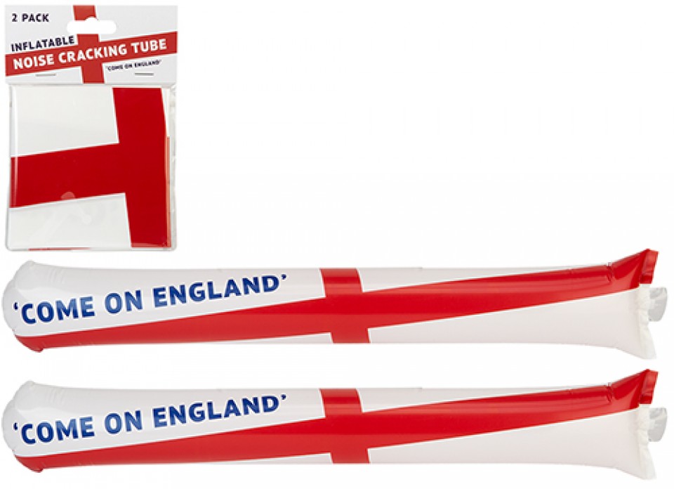 Create excitement at sporting events with St George Inflatable Noise Cracking Tubes, perfect for England football matches, tournaments and celebrations. Featuring the iconic St Georges Cross design, these lightweight inflatable cheering sticks produce loud clapping sounds when struck together. A popular fan merchandise accessory ideal for retailers stocking England supporter gear and event novelties.