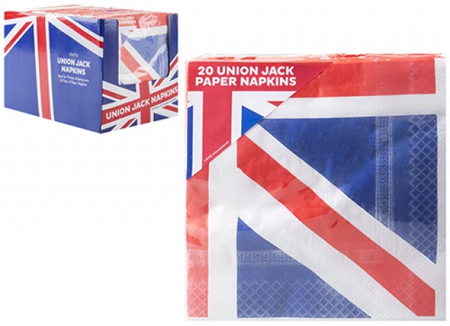 Pack of 20 napkins. Celebration Union Jack themed design. Strong and Durable.