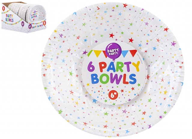 PARTY PARTY PAPER BOWLS 6" PACK OF 6