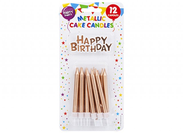 Pretty rose gold coloured candles with Happy Birthday topper, perfect for any celebration.