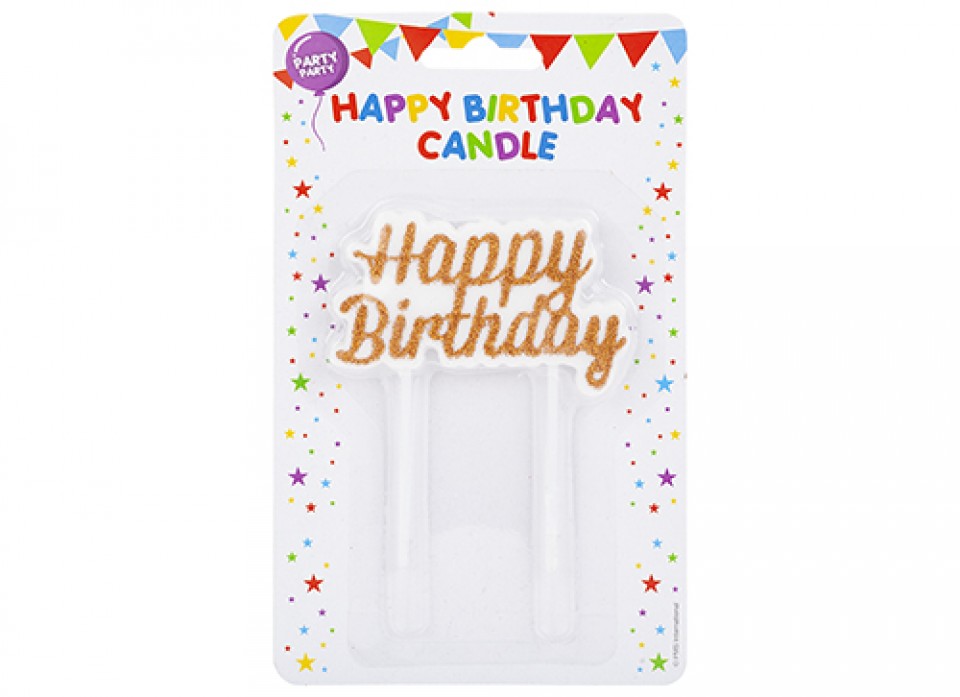 PARTY PARTY HAPPY BIRTHDAY GLITTER CANDLE ROSE GOLD