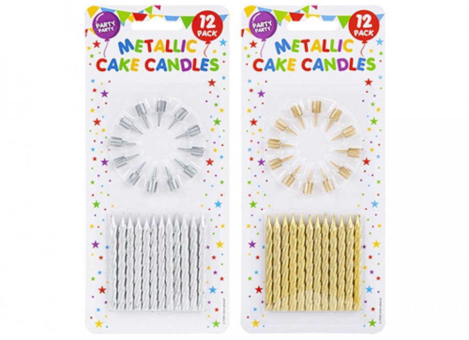PARTY PARTY METALLIC CANDLES WITH HOLDERS 12 PACK