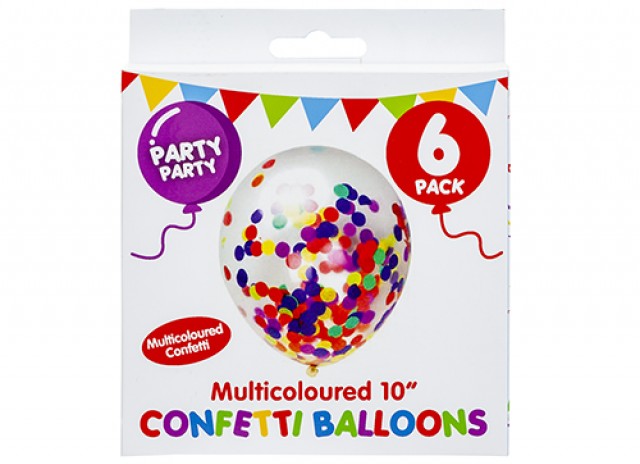 PARTY PARTY CONFETTI BALLOONS 6 PACK