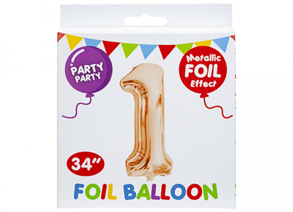 PARTY PARTY FOIL NUMBER 1 BALLOON 34" - ROSE GOLD