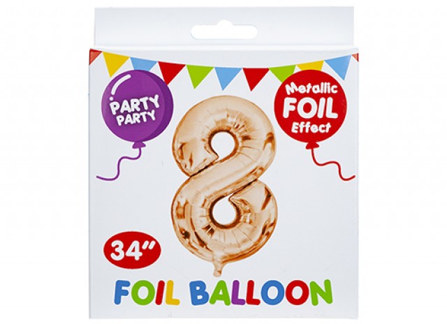 Metallic foil effect rose gold number 8 balloon.