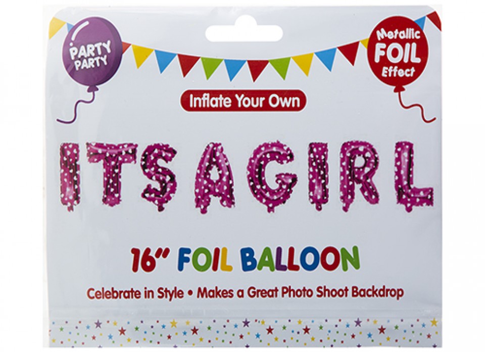 PARTY PARTY FOIL IT'S A GIRL BALLOON 16" - PINK