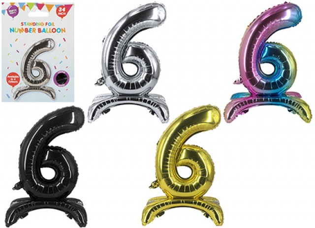 PARTY PARTY STANDING FOIL NUMBER 6 BALLOON 34"4 ASSORTED