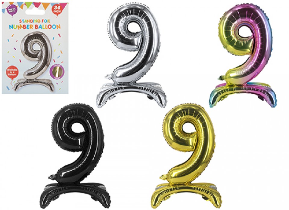 PARTY PARTY STANDING FOIL NUMBER 9 BALLOON 34"4 ASSORTED