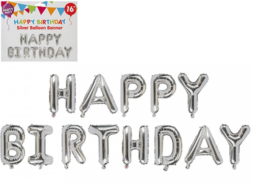 - Silver Foil Happy Birthday Balloon Banner