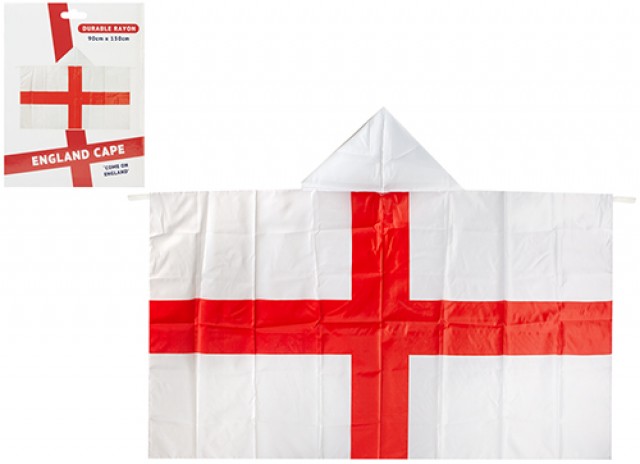 Show your national pride with the St George Rayon Cape. Made from lightweight, durable rayon fabric, this bold red and white cape features the iconic St George's Cross-perfect for sporting events, parades, and celebrations. Easy to wear and eye-catching, it's a must-have accessory for patriotic parties and displays.