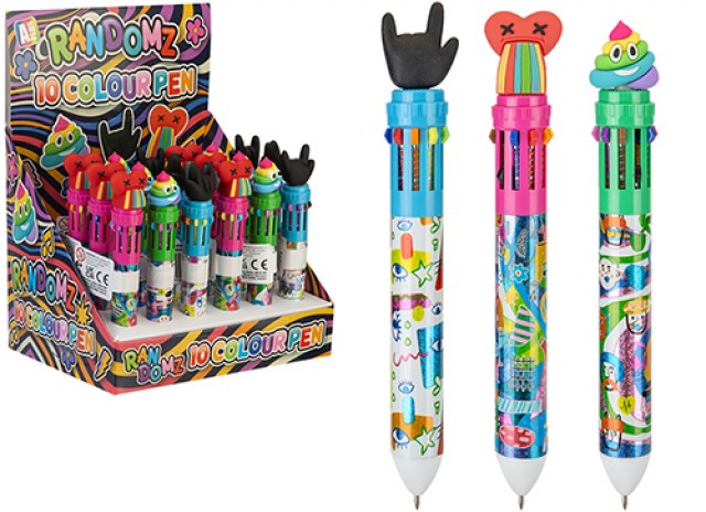 Add vibrant variety to your stationery range with the Paper Jam Randomz 10 Colour Pen. Featuring ten bright ink colours in one convenient pen, these fun multi-colour pens come in three assorted Randomz designs. Perfect for school, colouring, and creative writing, theyre an eye-catching stationery essential for kids, gift shops, and impulse purchases.