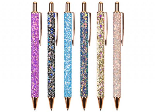 Shine with the Sparkly Glitter Pen with Steel Barrel! Available in 6 assorted dazzling designs, these pens combine a sturdy steel barrel with eye-catching glitter finishes. Perfect for schools, offices, gifts, and retail promotions, this stylish stationery item adds sparkle to everyday writing while boosting wholesale sales opportunities.