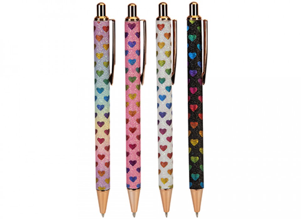 LOVE HEART BALLPEN WITH STEEL BARREL 4 ASSORTED