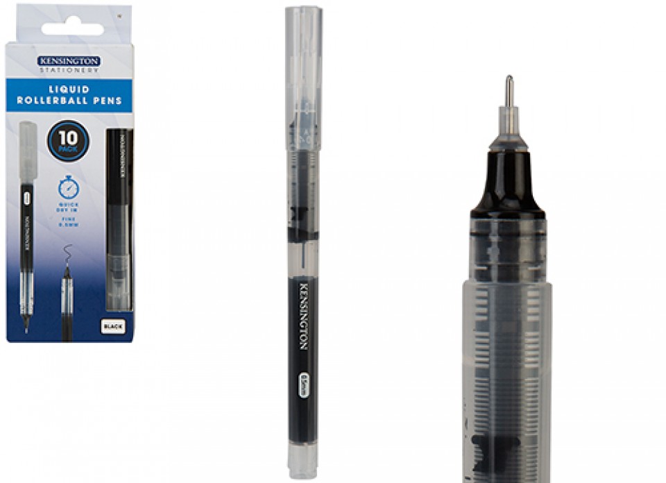 KENSINGTON STATIONERY LIQUID ROLLER BALL PENS 10 PACK