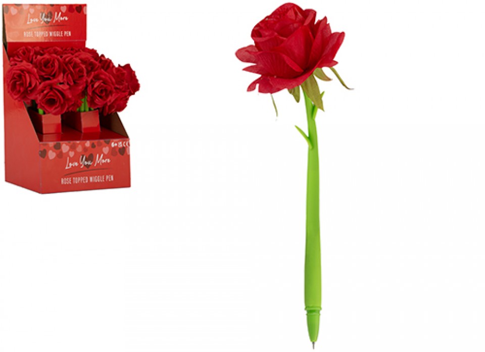 - Love You More Red Rose Topped Wiggle Pen
