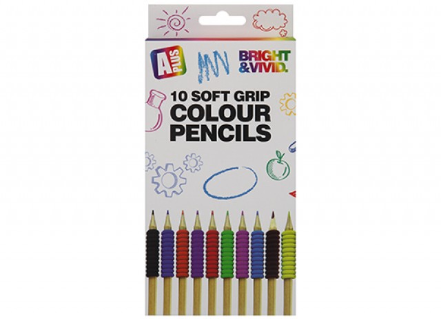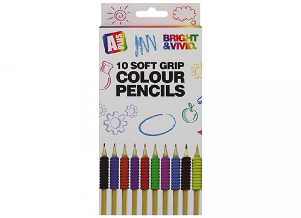 A PLUS COLOURING PENCILS WITH GRIP SLEEVE 10 PACK