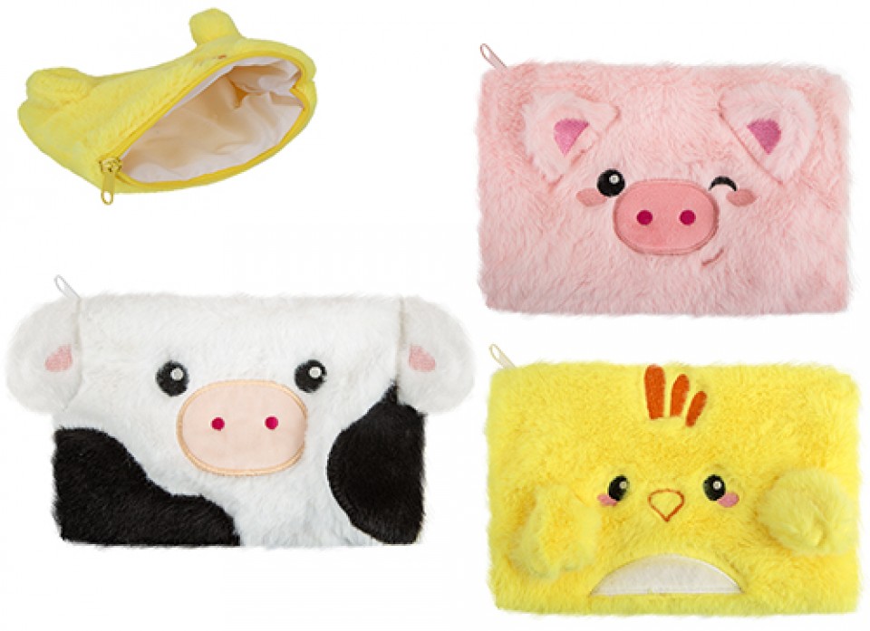 Adorable and practical, these Farm Plush Pencil Cases come in three assorted animal designs. Soft, durable, and spacious, they're perfect for storing pens, pencils, and stationery. Ideal for schools, gift shops, and promotions, this eye-catching wholesale product combines fun, functionality, and excellent retail appeal.