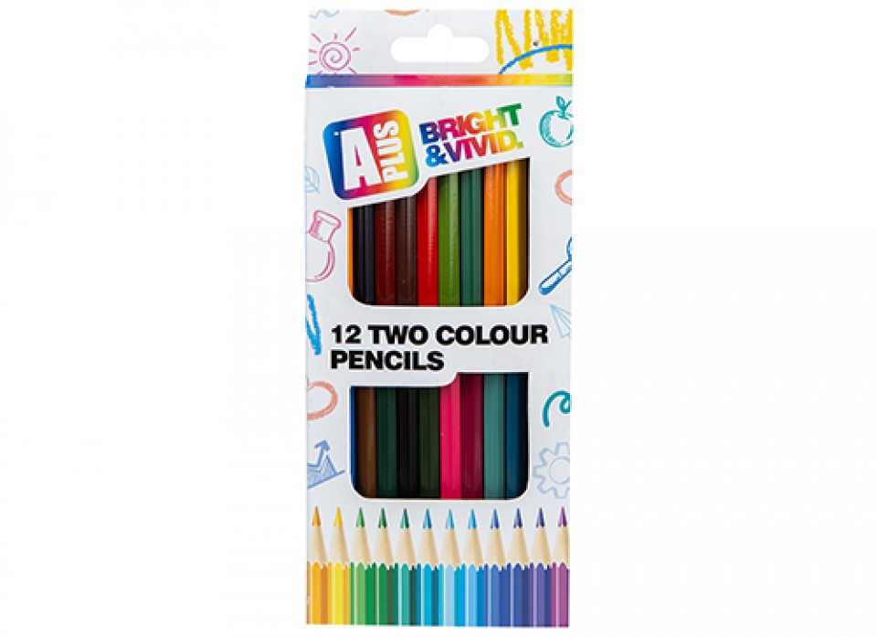 A PLUS 12 Twin Colour Pencils offer vibrant, dual-ended colouring for creative versatility. Ideal for schools, offices, and retail resale, each pencil features two bold shades, doubling value in one compact set. Perfect for art projects, sketching, and colouring, these high-quality pencils deliver smooth application and long-lasting performance.