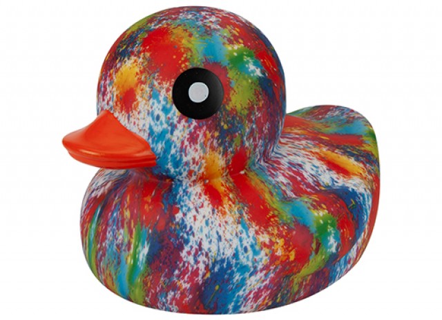 Brighten bath time with the Splash Multicolour Duck . 20cm. Featuring a bold, eye-catching rainbow design, this oversized novelty duck is perfect for display, gifts, or water play. Durable and fun, it's a standout item that appeals to children and collectors, offering excellent resale potential for retailers.