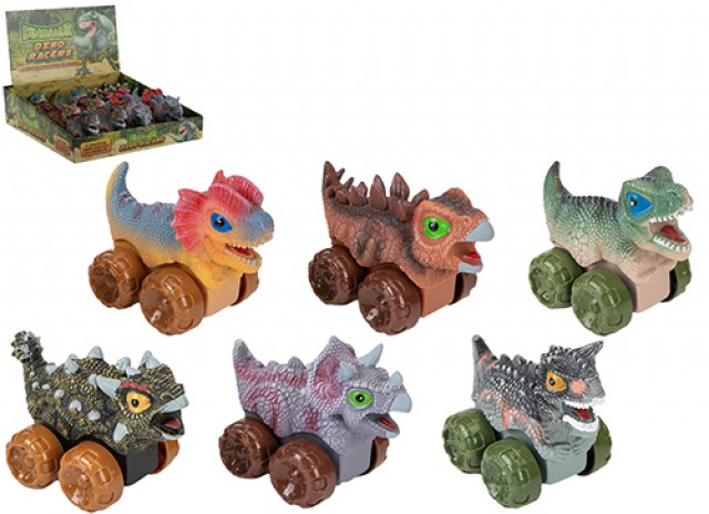 6 assorted 11.5cm Dinosaur Vinyl Racers Free Wheel feature vibrant, durable dinosaur designs with smooth free-wheel action. Ideal for wholesale buyers, these collectable racers deliver fun, quality play experiences and strong retail appeal.