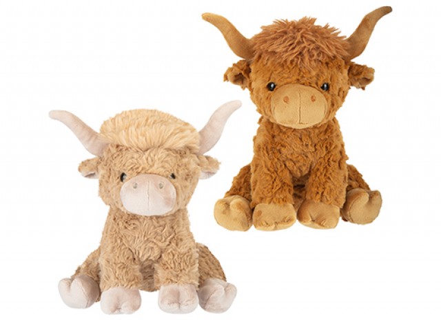 Cute Baby Highland Cow plush with ruffled fur design, available in 2 assorted styles. Measuring 25cm, this soft toy combines trending farm animal appeal with premium texture. Perfect for gift shops, garden centres and tourist outlets, it drives impulse purchases and adds variety to wholesale plush ranges with strong customer demand.
