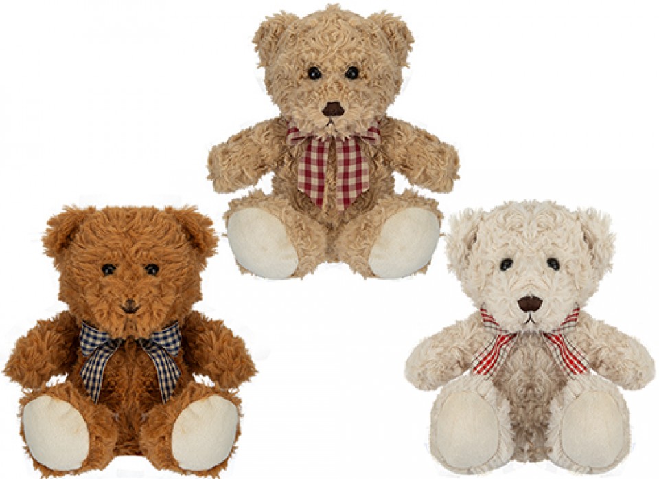 CUDDLE CREW TRADITIONAL TED WITH CHECK BOW 20CM 3 ASSORTED