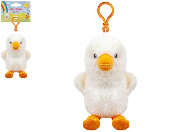 Plush Chick with yellow beak and feet with clip on attachment. Soft white material.
