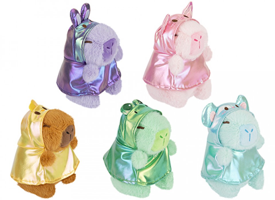 Drive impulse sales with the Capybara in Sparkle Animal Raincoat 11cm, available in five assorted designs. These cute, collectible figures feature glittery raincoats and charming detail. Perfect for gift shops, toy retailers, and pocket money lines, offering strong trend appeal, eye-catching displays, and excellent value for high-volume retail opportunities.