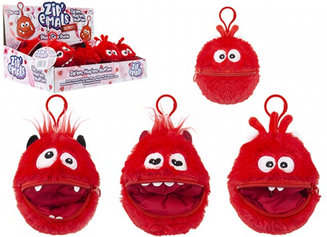 ZIPEMALS PLUSH COIN PURSE 3 ASSORTED 12CM