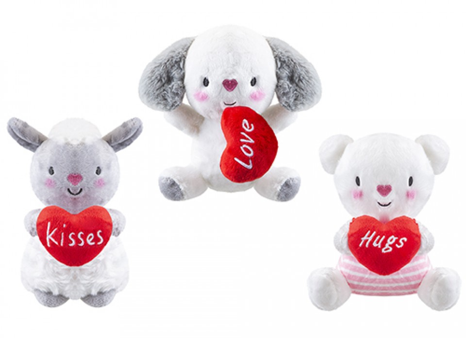 Cute assortment of animals holding a red embroidered cushion hart. Perfect for someone special.