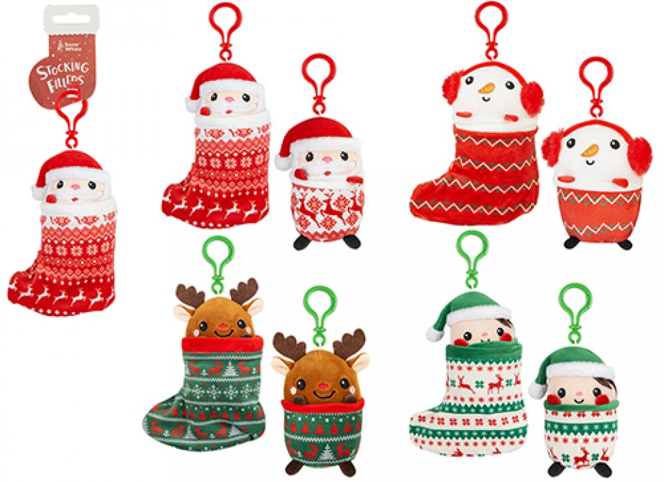 Charming Christmas clip on teddies nestled snugly in Christmas Stockings.