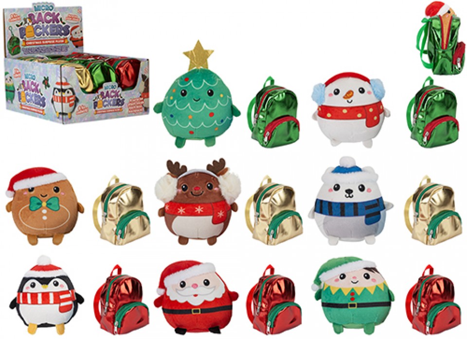 The 8 assorted 11cm Micro Backpacks are the perfect festive accessory, each with a Christmas surprise inside! These fun, compact backpacks feature unique designs and a hidden Christmas-themed treat, making them ideal for retail or as stocking fillers. A charming gift option for the Christmas season, sure to delight customers.