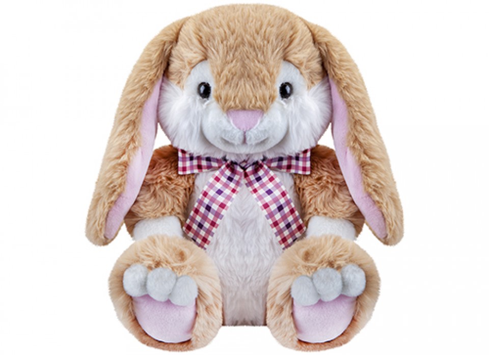 Bonny bunny with Long plush fur, soft and fluffy with a checked bow ribbon.