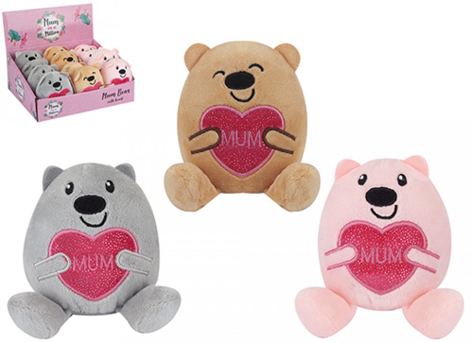 BEST MUM EVER BEAR HUGGING SHINY HEART 3 ASSORTED