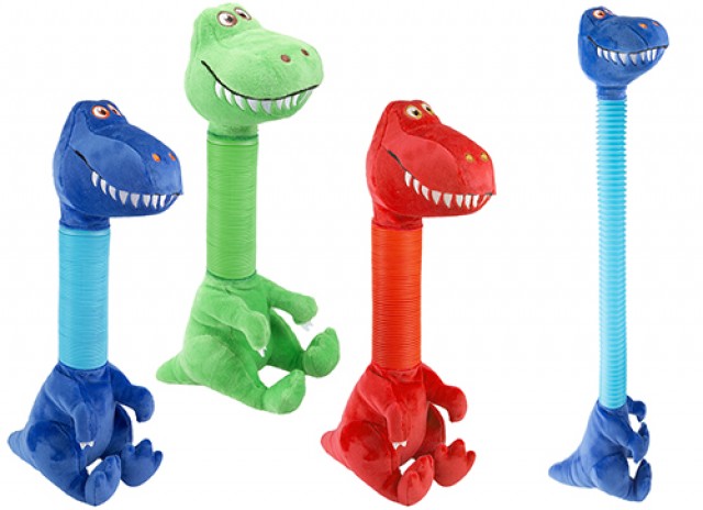Large Dinosaur with telescopic pop tube neck and embroidered features.