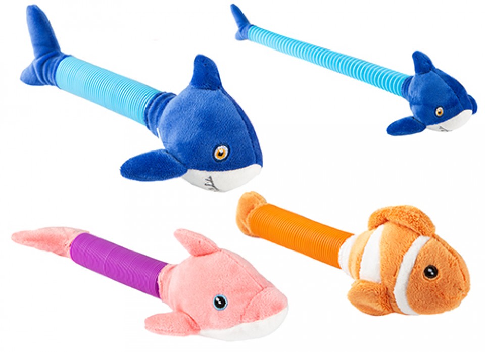 Medium Sea Life soft toys with telescopic pop tube bodies.