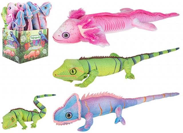 - 3 Assorted: Pink Axolotl, Purple Lizard,