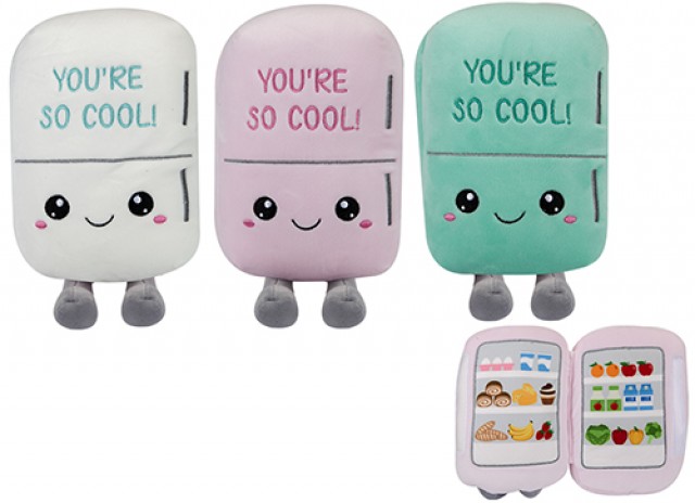 Fridge Plush 11.5" . 3 Assorted offers oversized fun with a playful trio of fridge-inspired plush characters. Each 11.5-inch design is crafted from ultra-soft fabrics with bold, eye-catching details. Perfect for retail displays, themed promotions, or giveaways, this must-stock assortment brings novelty appeal and maximum impact to any plush range.