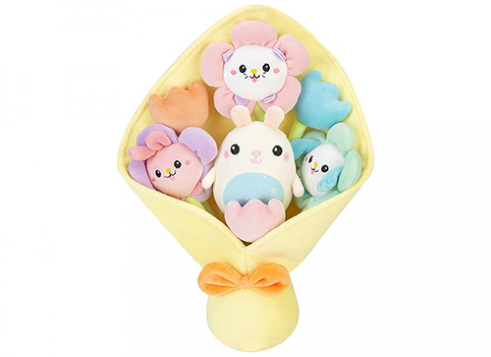Delight customers with the Softlings Universe Cute Flower Bouquet Plush, with an adorable plush rabbit. This charming floral-themed bouquet with a cuddly bunny companion is perfect for gifting, decor, or display. An irresistibly sweet addition to plush ranges, seasonal promotions, and impulse-buy gift selections.