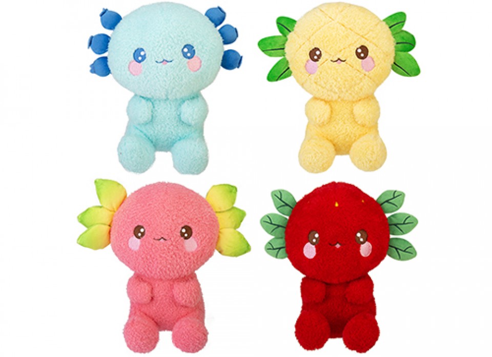 Fruit Axolotl 25cm plush combines vibrant colours and soft-touch fabric with a fun, fruity twist on a trending character. Available in 4 assorted designs, this eye-catching wholesale toy is perfect for gift shops, amusement prizes, and impulse purchases. A quirky, on-trend product that attracts attention and boosts retail sales.