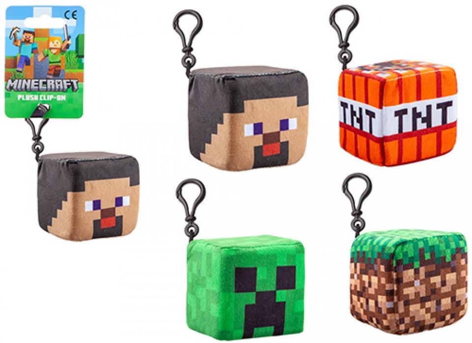 MINECRAFT PLUSH CUBE CLIP ON 8CM 4 ASSORTED