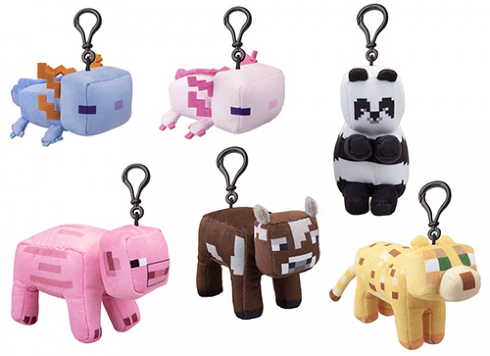 MINECRAFT ANIMAL PLUSH CLIP ON 13CM 6 ASSORTED