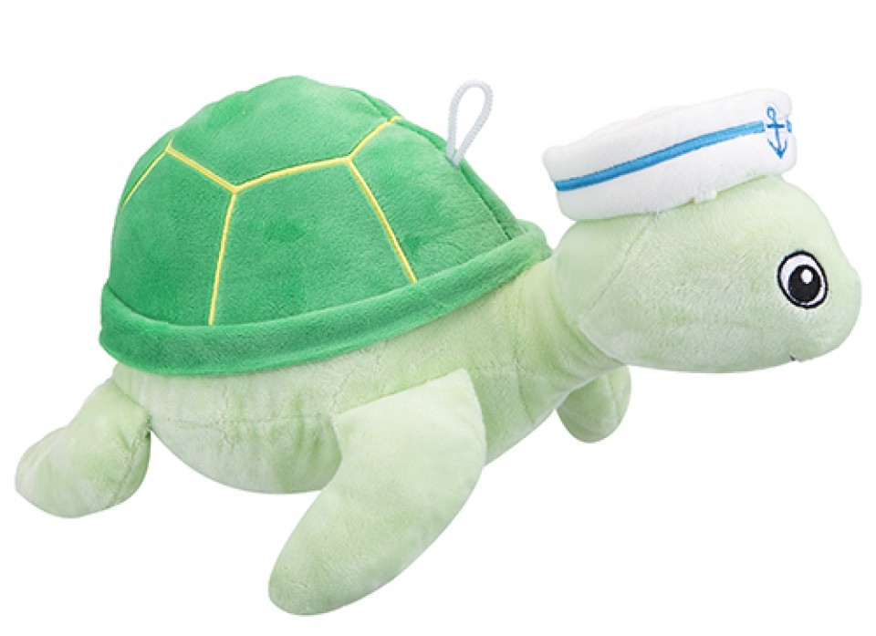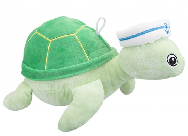 Cute green sailor turtle with sailors hat. Soft plush material.