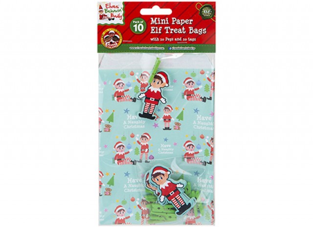 Mini paper Elf treat bags. Handy pack of 10 bags with pegs & Tags.